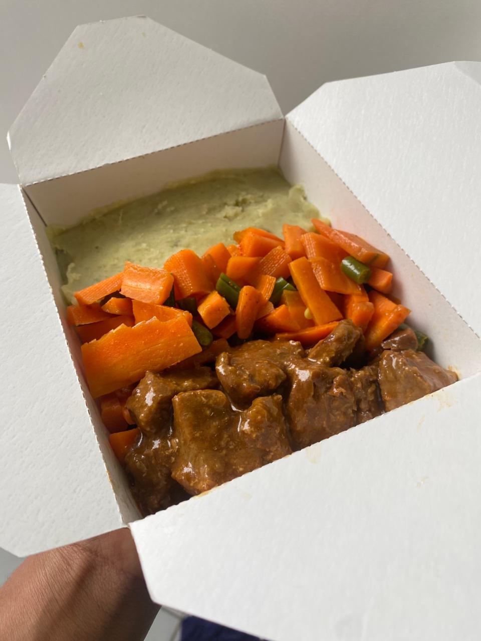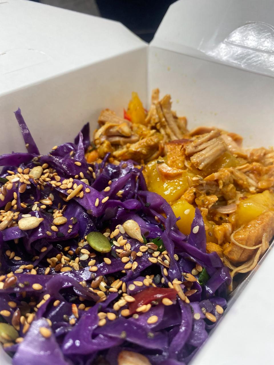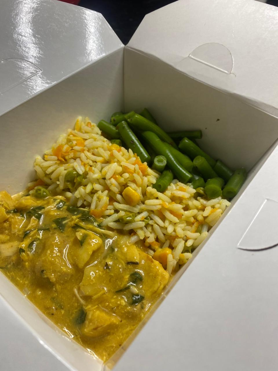 Tilápia empanada com gergelim, servida com purê de batata inglesa, couve refogada e mix de legumes. Leve, saborosa e equilibrada.